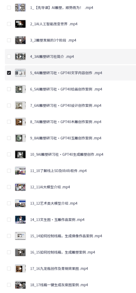 AI雕塑研习社·实训课,AI雕塑软件实操及技巧应用,一次让你成为AI雕塑高手admin5个月前发布关注私信03110 《AI雕塑研习社·实训课》是一门从基础到高级的AI雕塑实战课程,涵盖AI雕塑软件实操、技巧应用及多种雕塑案例。 此处内容已隐藏,请评论后刷新页面查看. © 版权声明文章版权归作者所有,未经允许请勿转载。THE ENDAI 技能学习# AI 技能学习 喜欢就支持一下吧点赞10 分享QQ空间微博QQ好友海报分享复制链接收藏