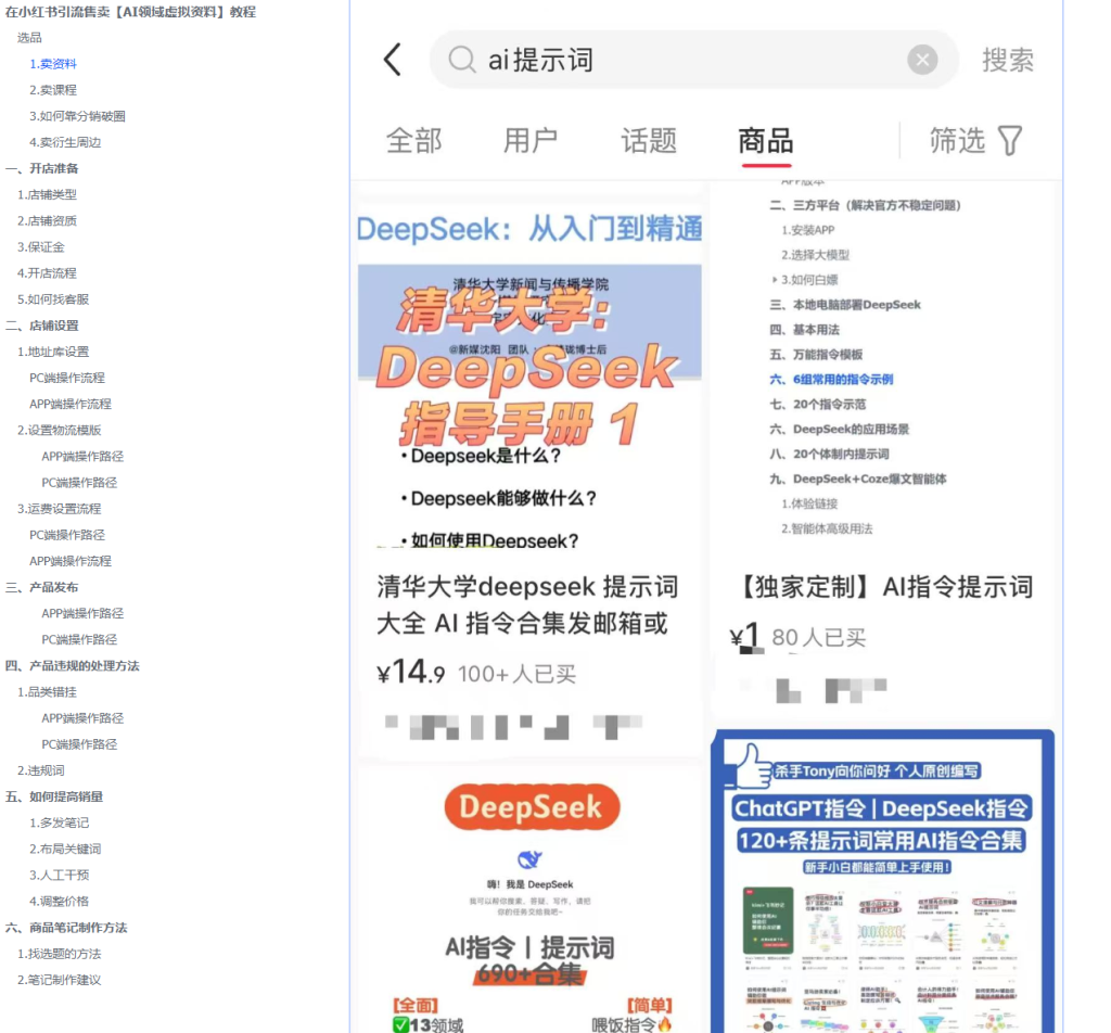 这也就延伸出了一个有前景的副业项目:【在各大电商平台、自媒体平台售卖AI相关的教学/提示词】